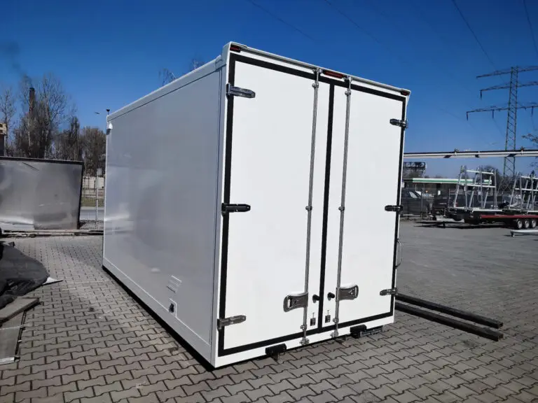 KBH AKORD SENTINEL MODULAR BODY CONSTRUCTION is an innovative design composed of wall, floor, and roof modules. Each module is a panel framed with patented aluminum profiles that enable quick assembly. The container modules are screwed together from the inside with screws hidden in the profiles, while isothermal and refrigerated boxes use externally mounted screws concealed under covering profiles. This advanced engineering eliminates messy glues and chemicals, ensuring clean, professional installation.