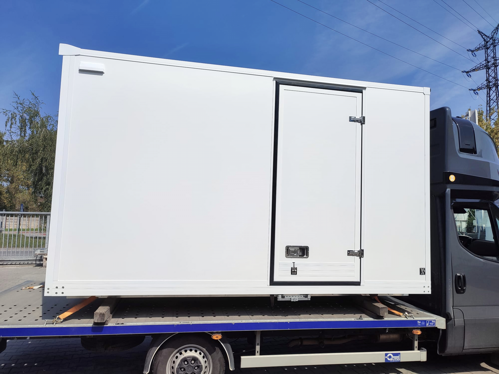 KBH AKORD SENTINEL MODULAR BODY CONSTRUCTION is an innovative design composed of wall, floor, and roof modules. Each module is a panel framed with patented aluminum profiles that enable quick assembly. The container modules are screwed together from the inside with screws hidden in the profiles, while isothermal and refrigerated boxes use externally mounted screws concealed under covering profiles. This advanced engineering eliminates messy glues and chemicals, ensuring clean, professional installation.